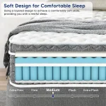 1.The top surface is crafted from 3D knitted jacquard, making it super breathable and comfy, ensuring the hybrid mattress king stays cool and dry.Inside, you’ll find layers of supportive memory foam and individually wrapped coils that offer outstanding support and comfort.Plus, it’s completely without fiberglass.