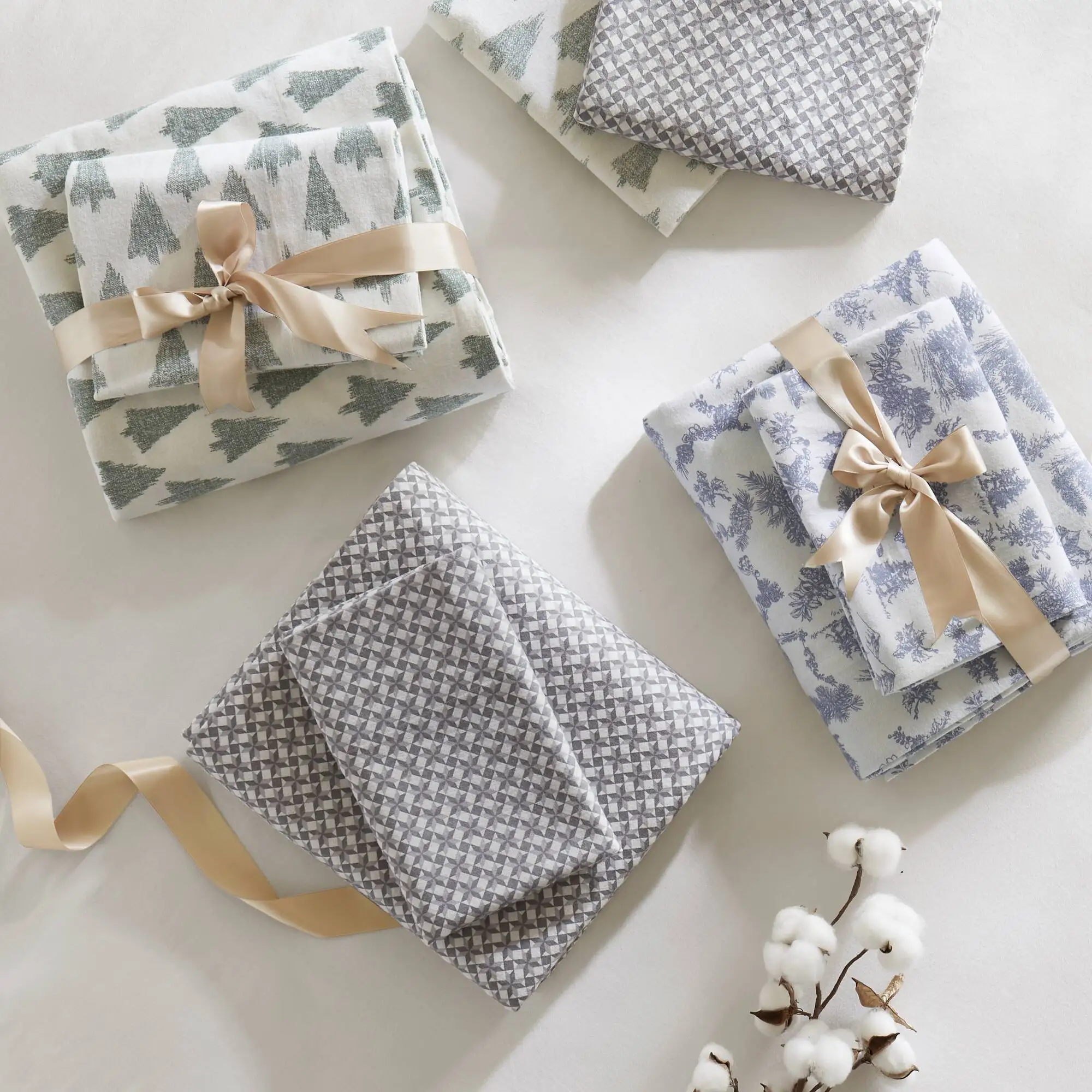 Product Name:4-Piece Queen 100% Cotton Flannel Printed Sheet Set,Snowflake