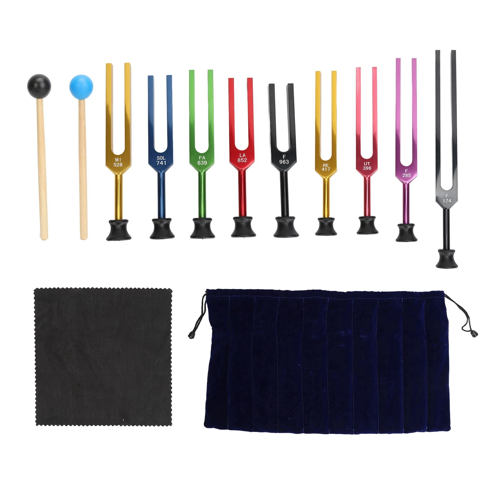 Tuning Forks Set Aluminum Alloy Long Vibration Time Resonant Tuning Fork with Hammer for Healing