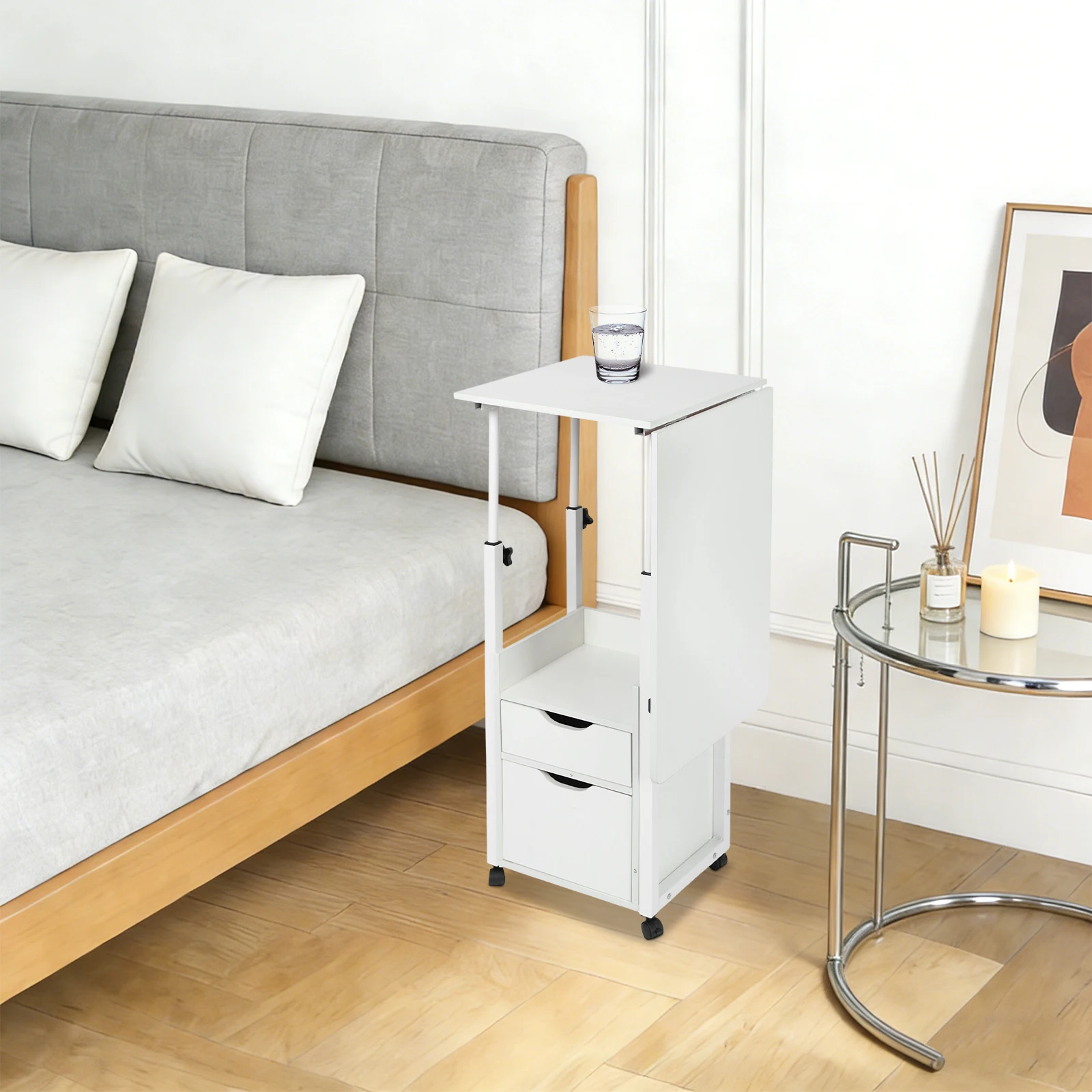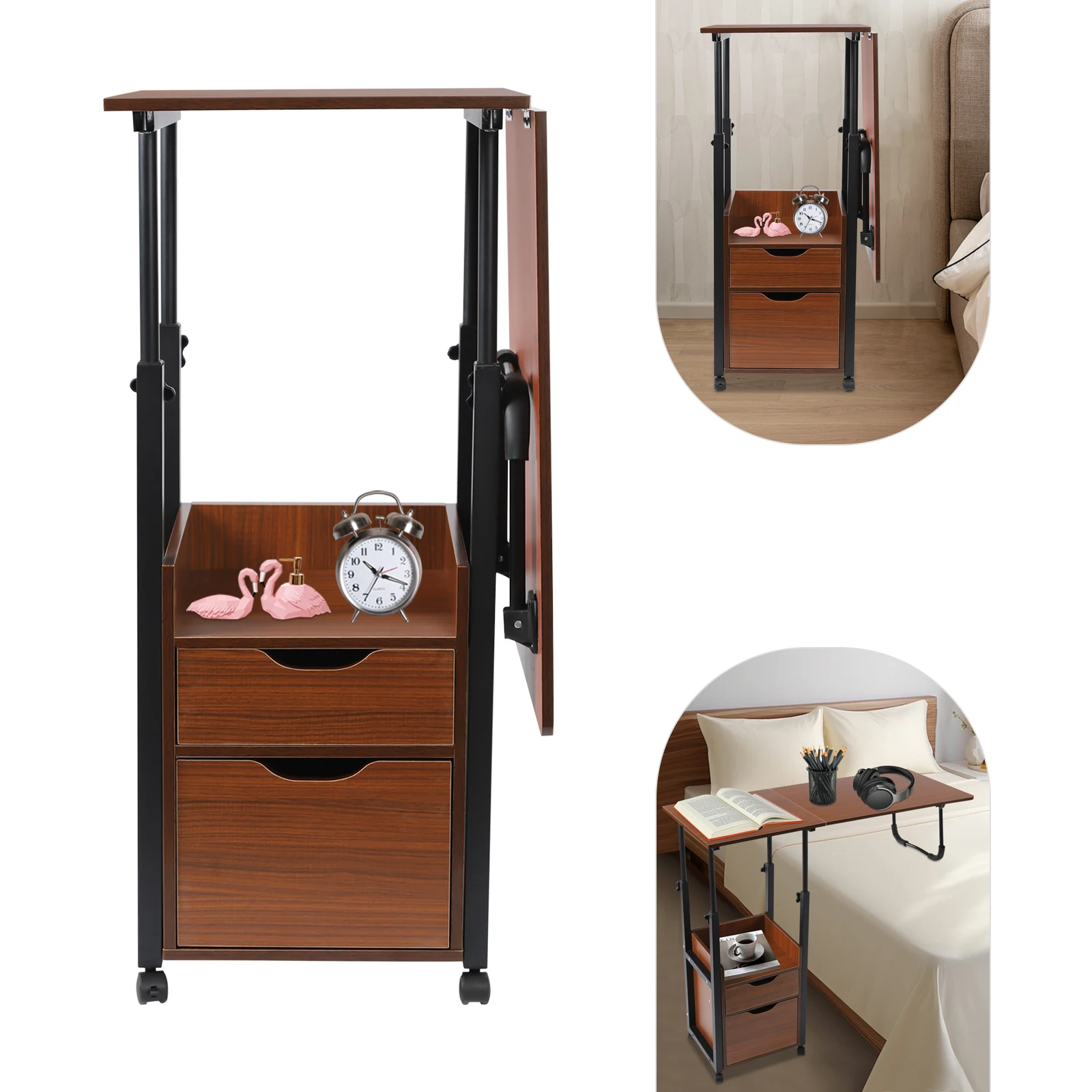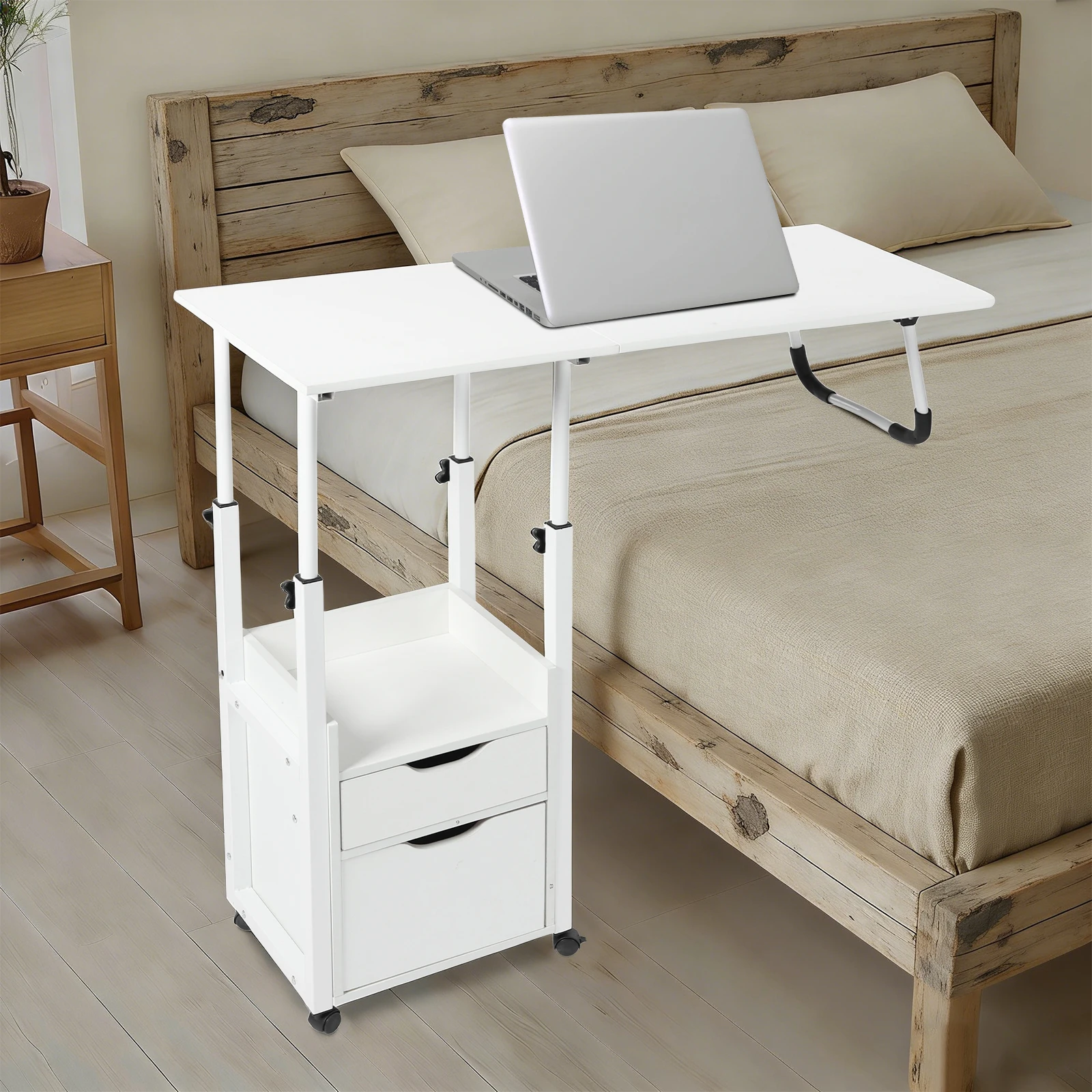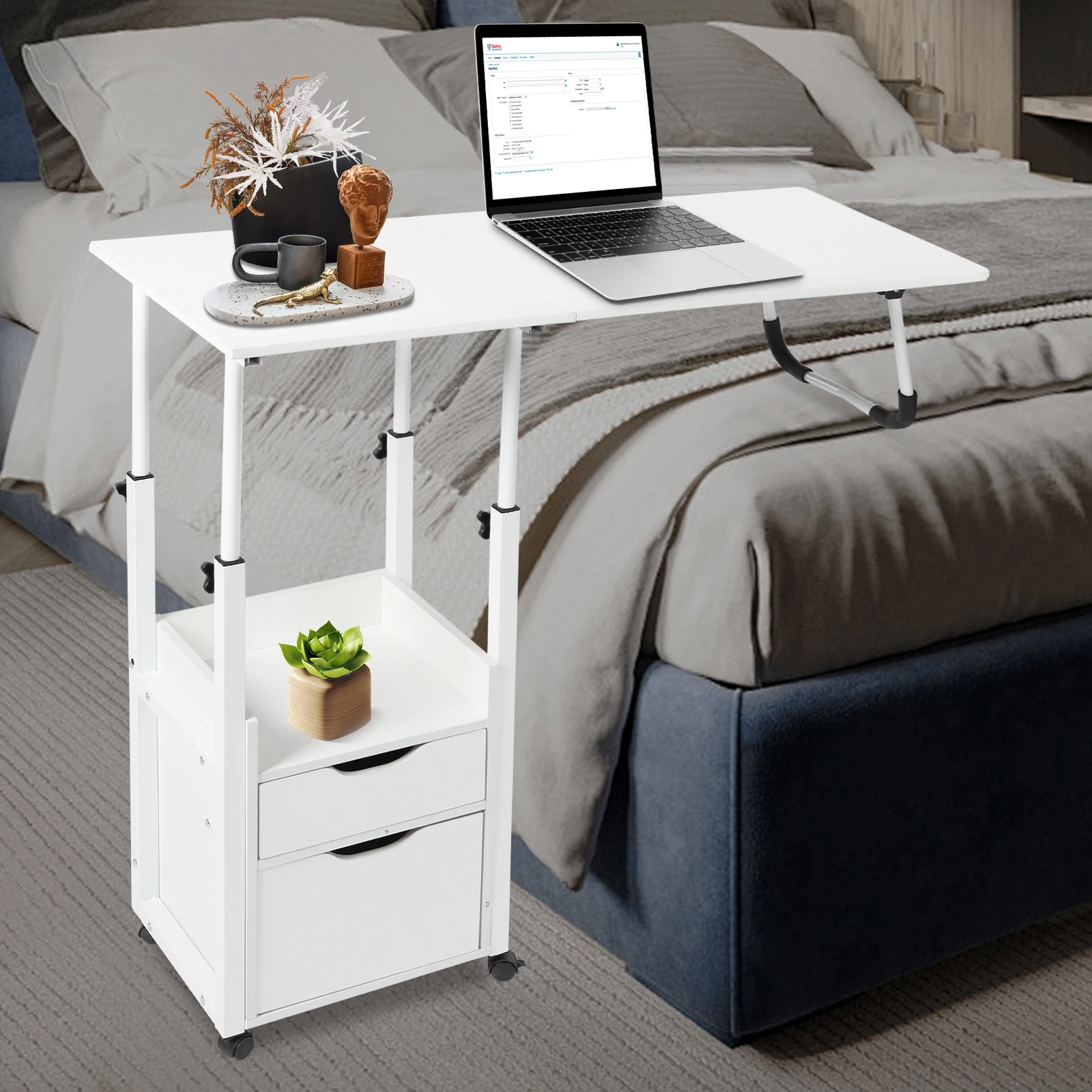 Wheeled Overbed Desk 44lbs Load Adjustable Height 27-34in Foldable Top with Drawers for Bedroom Study Hospital Patient