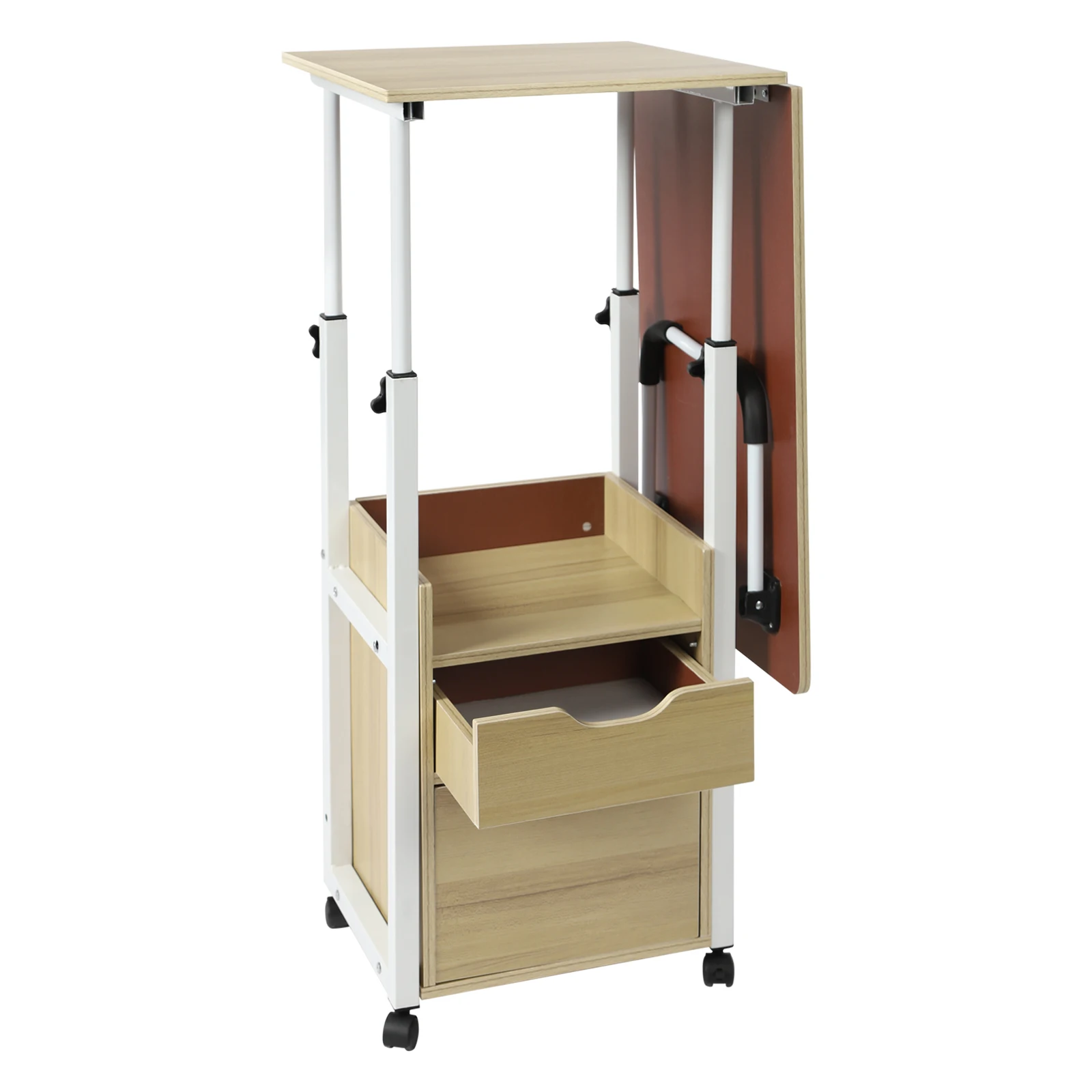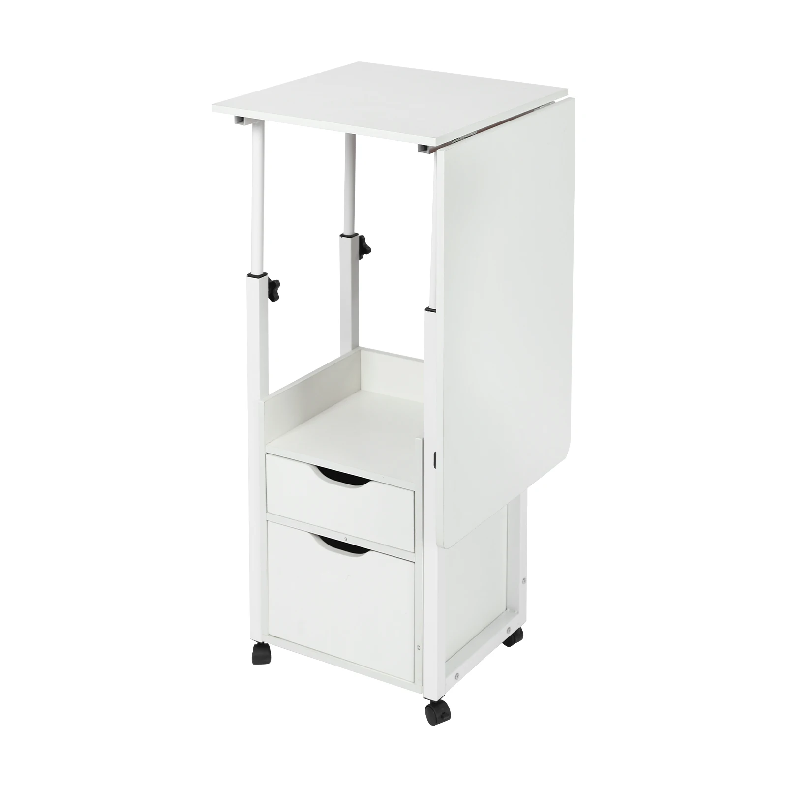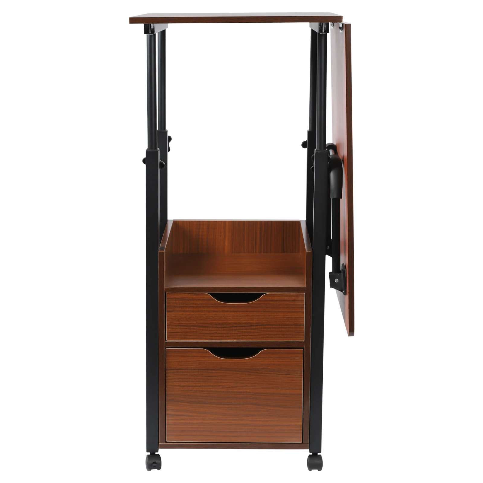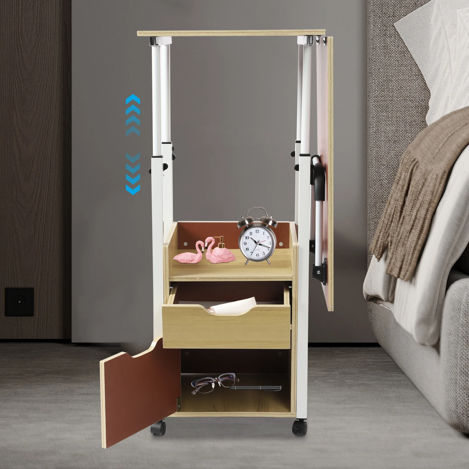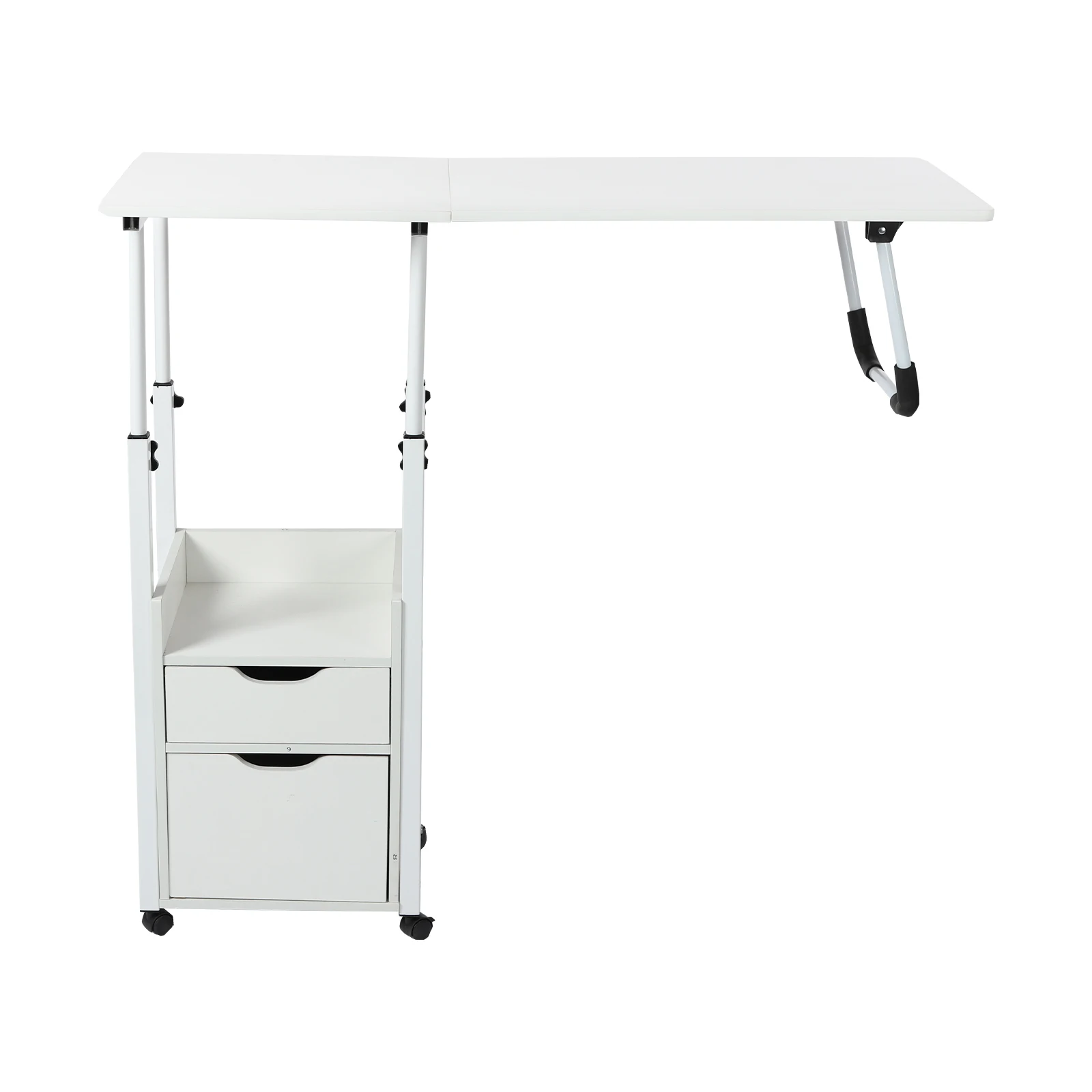 Wheeled Overbed Desk 44lbs Load Adjustable Height 27-34in Foldable Top with Drawers for Bedroom Study Hospital Patient