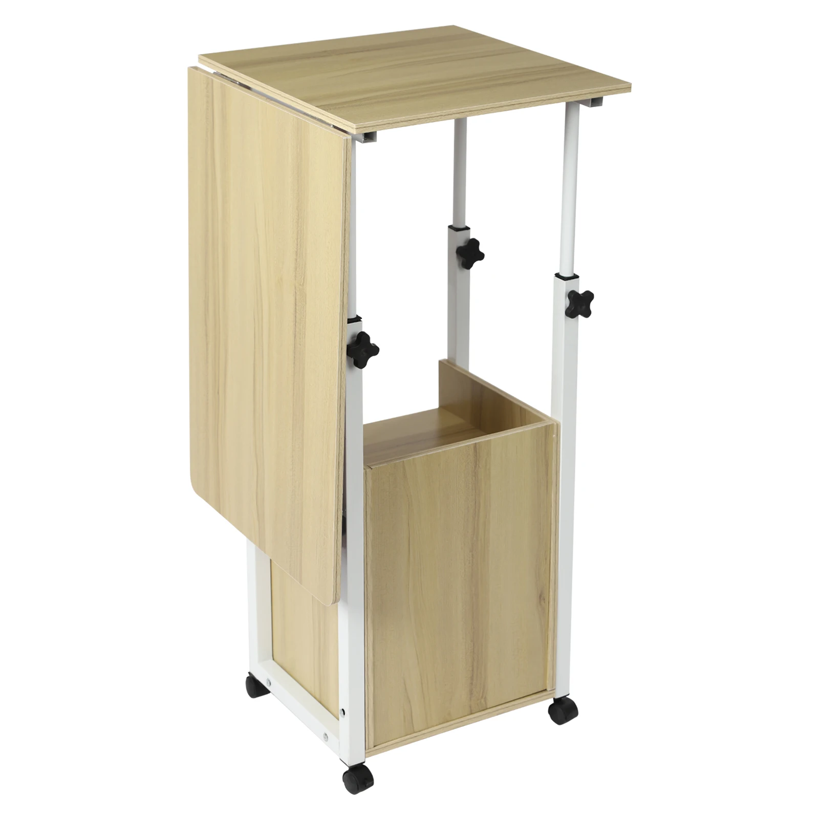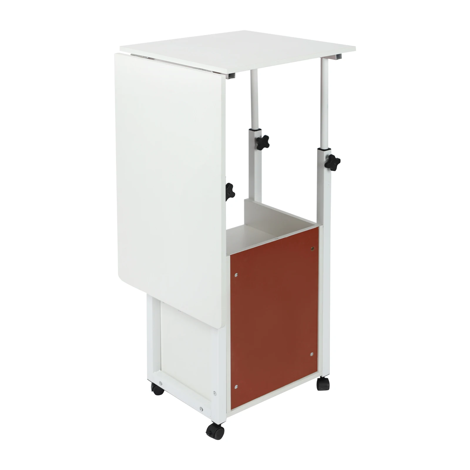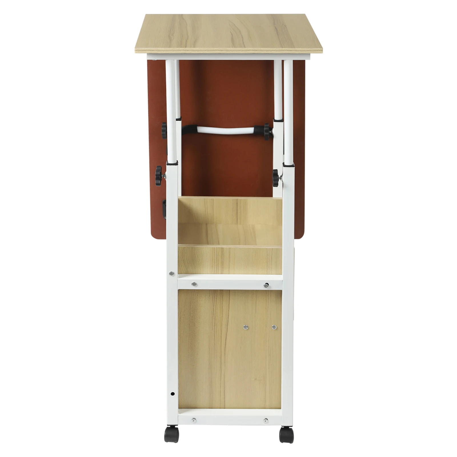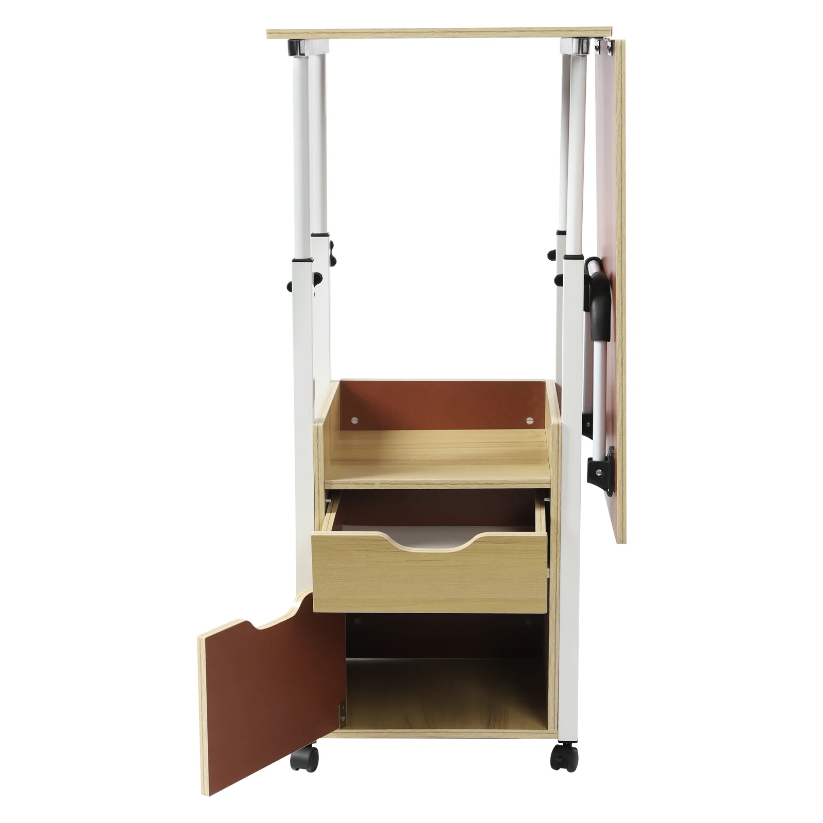 Wheeled Overbed Desk 44lbs Load Adjustable Height 27-34in Foldable Top with Drawers for Bedroom Study Hospital Patient